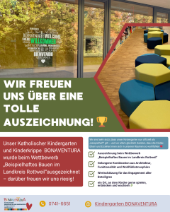 Unser Katholischer Kindergarten und Kinderkrippe BONAVENTURA wurde beim Wettbewerb „Beispielhaftes Bauen im Landkreis Rottweil“ausgezeichnet – darüber freuen wir uns riesig!
