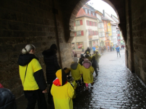 Am Mittwoch, den 11.02.2026 war das Kinder- und Familienzentrum Himmelreich vormittags im Rahmen des Krachmacherumzugs in Rottweil unterwegs. Zuerst ging es mit dem Rottweiler Narrenmarsch durch das schwarze Tor, wo alle Kinder mit Trommel, Rätsche oder Topfdeckel auf sich aufmerksam gemacht haben. Anschließend ging es über den Wochenmarkt in das Rathaus. Hier besuchten wir den Oberbürgermeister und jedes Kind bekam eine kleine Überraschung! Nach der kleinen Stärkung ging es zu der Verwaltung der Katholischen Gesamtkirchengemeinde. Hier haben die Kinder einen Tanz vorgeführt und sich gemeinsam mit den Pädagogischen Fachkräften, den Mitarbeitern der Katholischen Gesamtkirchengemeinde und einigen Eltern auf die kommenden Fasnetstage eingestimmt. Nach den Besuchen, dem Krach und den Stärkungen gingen wir zurück in das Kinder- und Familienzentrum Himmelreich.