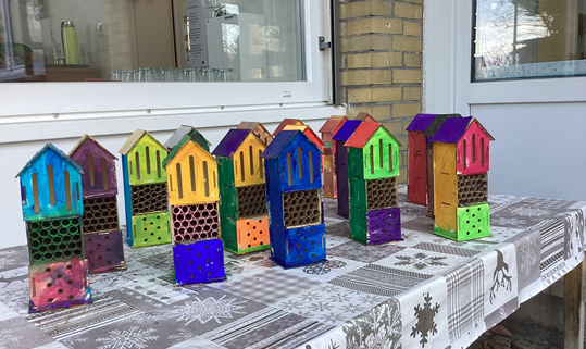 Nun dürfen die Kinder, ihre Insektenhotels mit nach Hause nehmen und können über das ganze Jahr hinweg fleißig beobachten, welche Insekten sich dort ein Zuhause suchen.