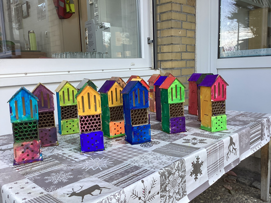 Nun dürfen die Kinder, ihre Insektenhotels mit nach Hause nehmen und können über das ganze Jahr hinweg fleißig beobachten, welche Insekten sich dort ein Zuhause suchen.